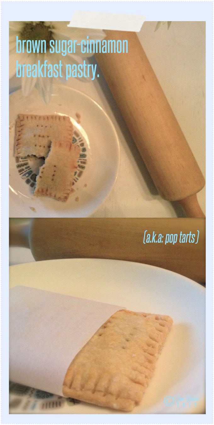 My daughter, who also has a gluten allergy, sent me a text a few weeks ago with many very sad-faced emoticons. She just had to endure the torture of toasting a brown sugar-cinnamon pop tart for the child she is babysitting for. Toast it, and then not be able to eat it. At one point in her life these were a mainstay in her diet; after school, late night, in the car on the way to gymnastics, toasted, un-toasted, on a plate, or straight from the thin foil wrapping. But not for the past year and a half. So I promised her I’d make her some and we’d be able to enjoy the delicious sugary filling wrapped in some (even better and flakier) gluten-free (and dairy free) pastry.