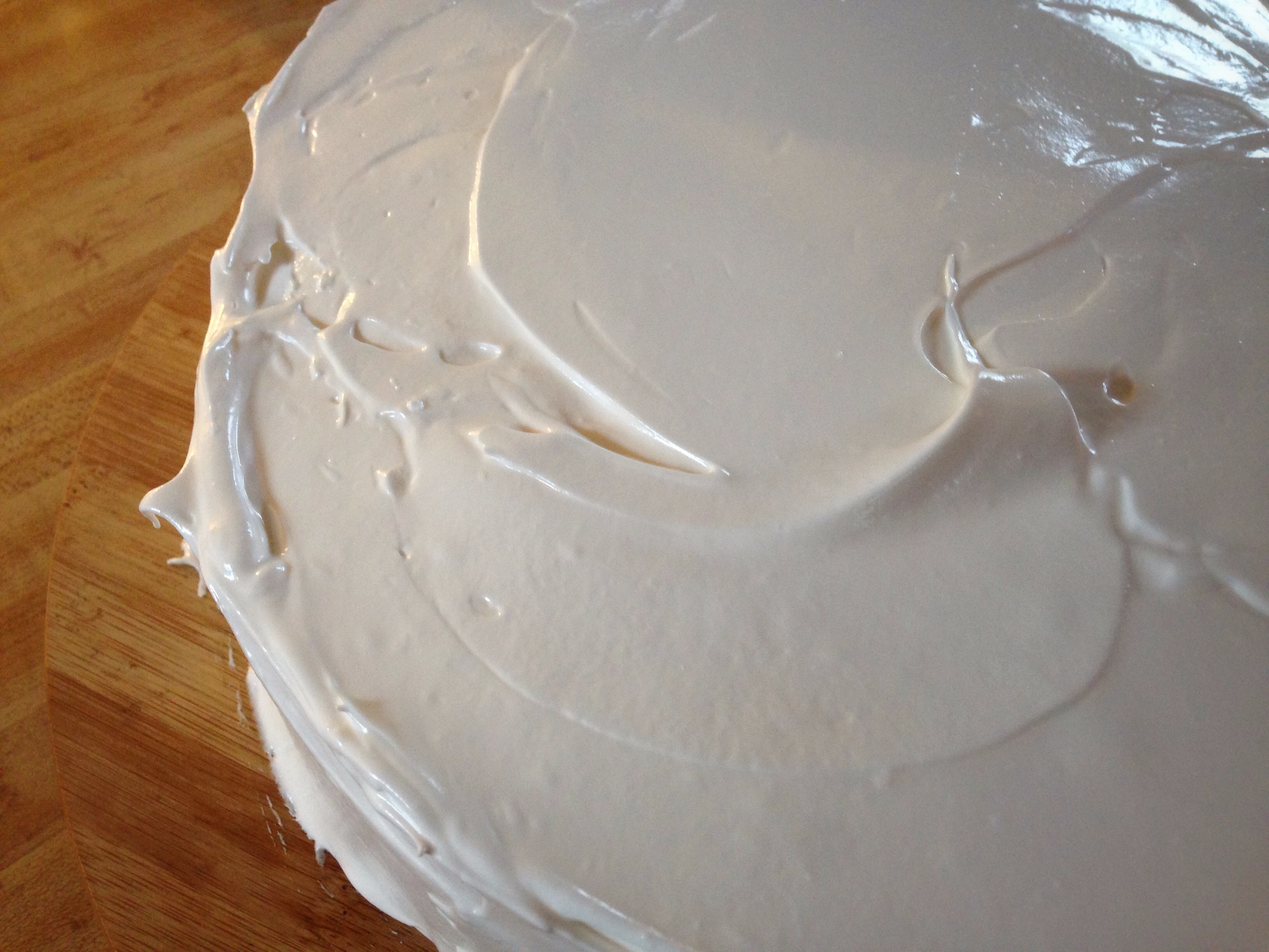 Frost your cake immediately while it is still slightly warm, this is much easier as it gets sticky when it cools.