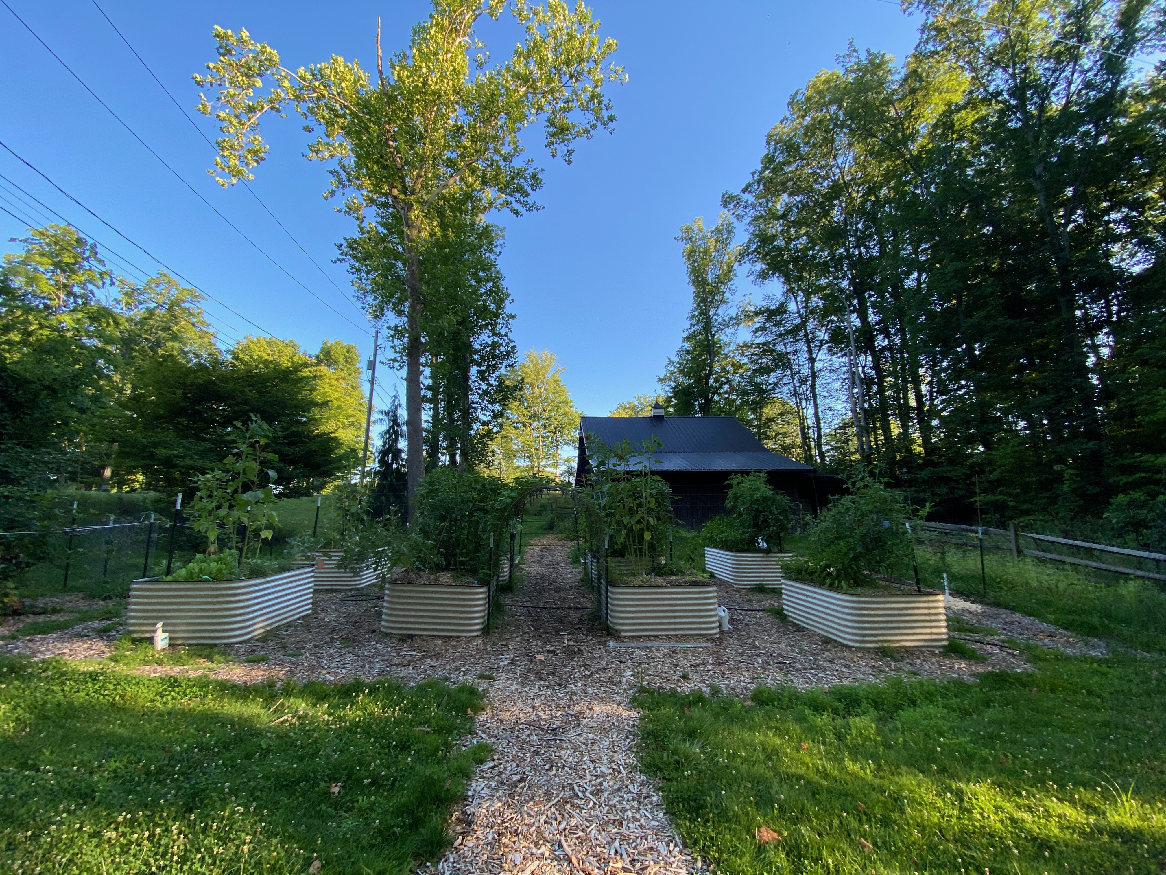 Also in 2022, we added more beds to the garden: bringing the total to eight tall beds. This season we grew a variety of things; from cucumber, to japanese spinach, kale, garlic, many varieties of tomatoes, peppers. Unfortunately before we could get a deer fence constructed, several of the young plants were eaten and we lost a lot of seedlings early on.