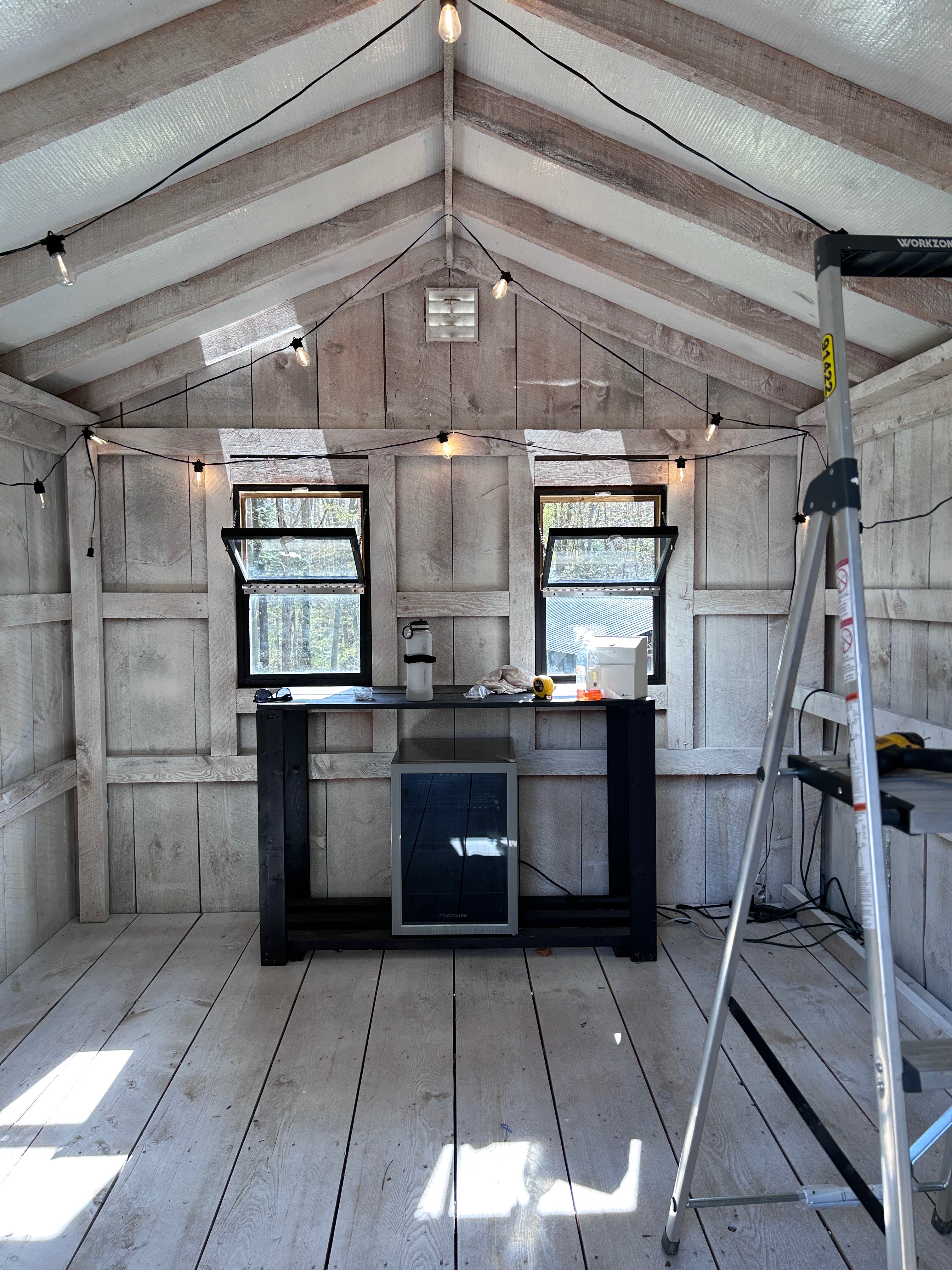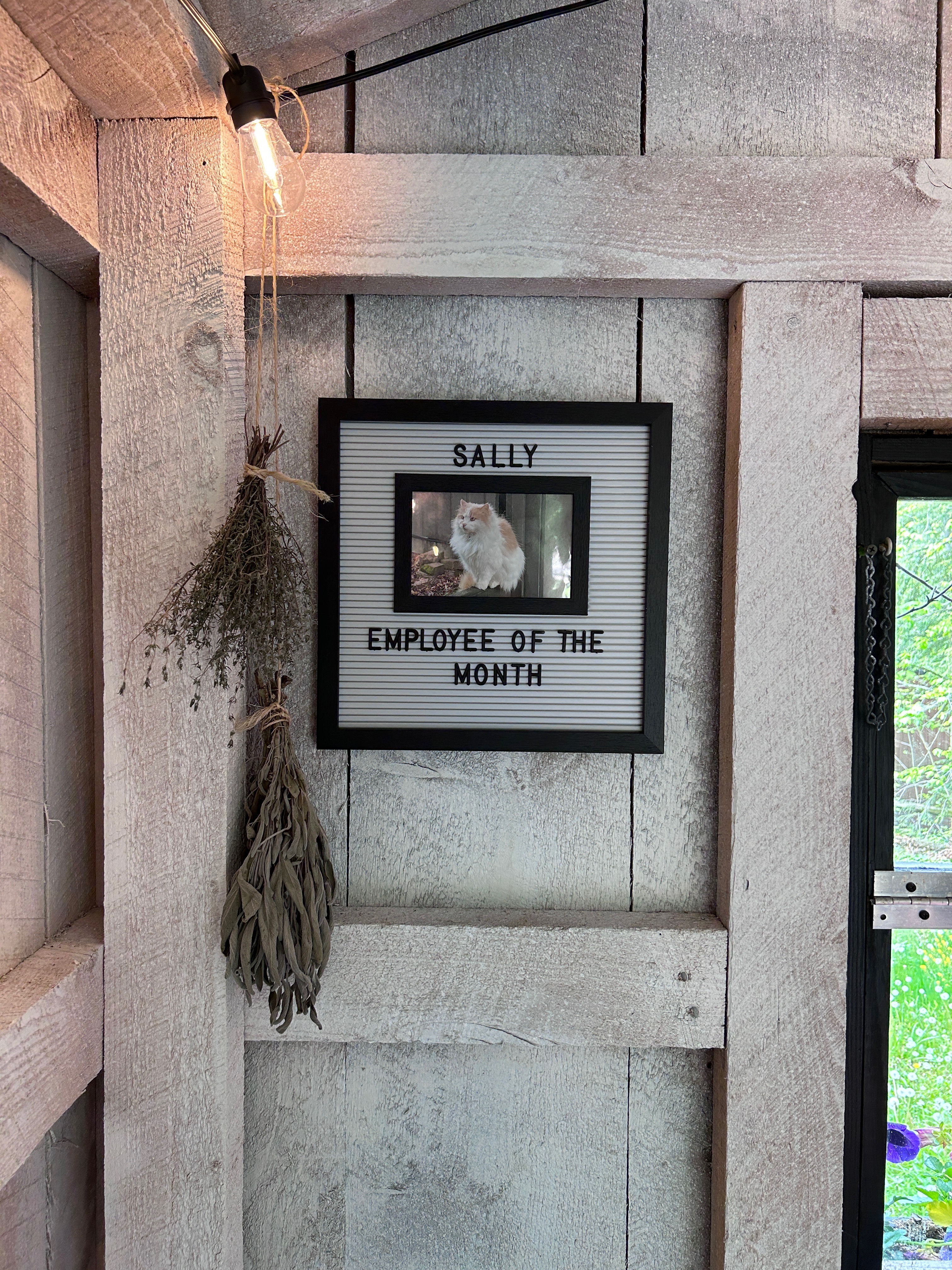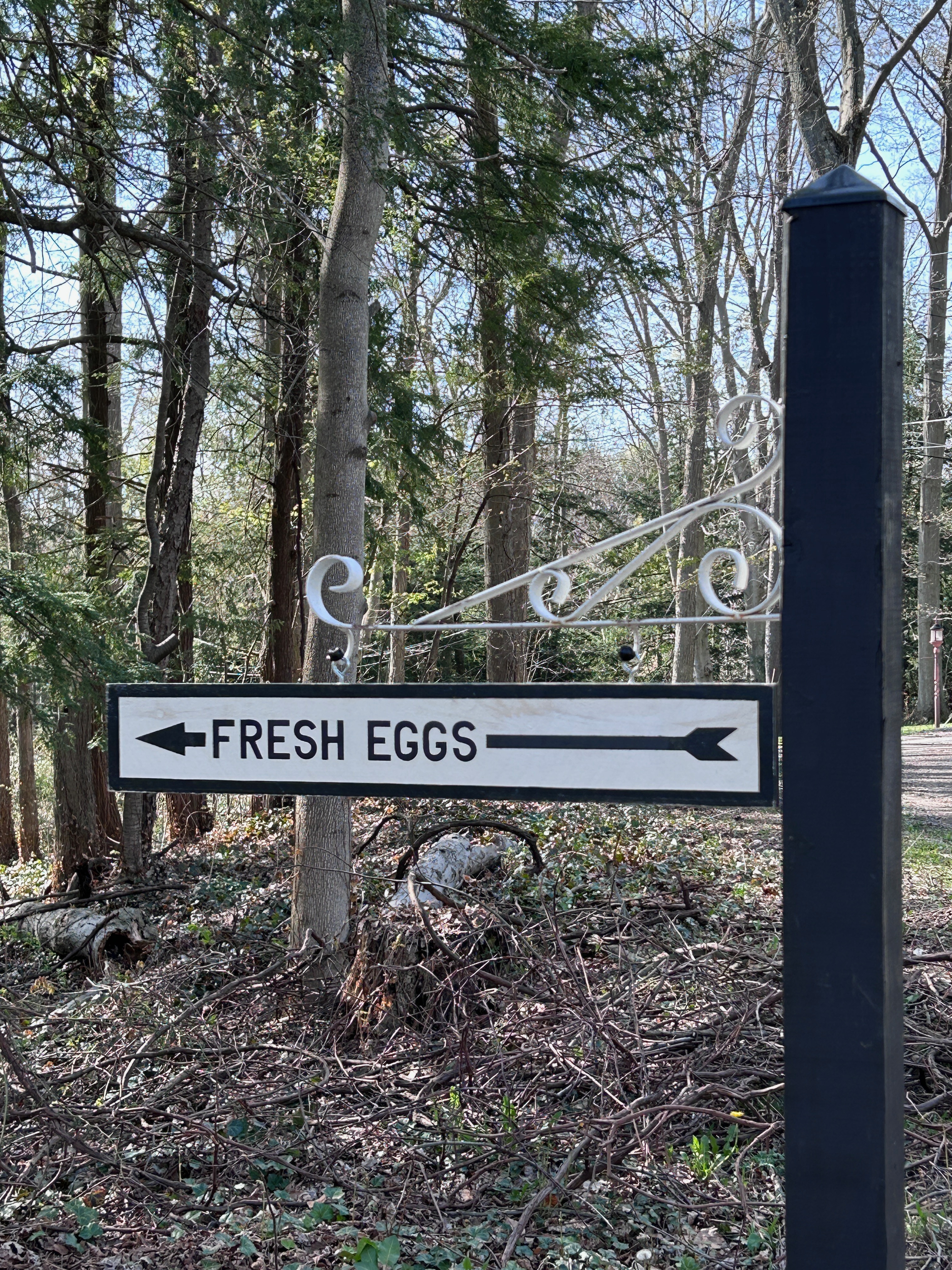 Spring of 2023 we decided to redo and expand the egg hut to be more of a farm stand. We whitewashed the interior, and painted the exterior black. I ordered some signage from etsy and what I couldn’t find there I ended up making myself. This past weekend we made a large farmhouse table to replace the rickety one that came with the shed. We also added four more low metal beds to the garden just for tomatoes, perfected the deer fencing, and have planted a considerable amount of landscaping where there was absolutely none. (We love the half off rack in the garden center. Orphan plants-like animals-have a home here!)